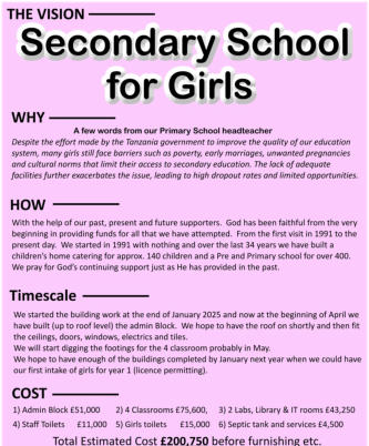 If you would like to support our vision for a new Secondary School for Girls please visit our page with details of how to donate (Click here).As of January 7th 2026 donations total:
