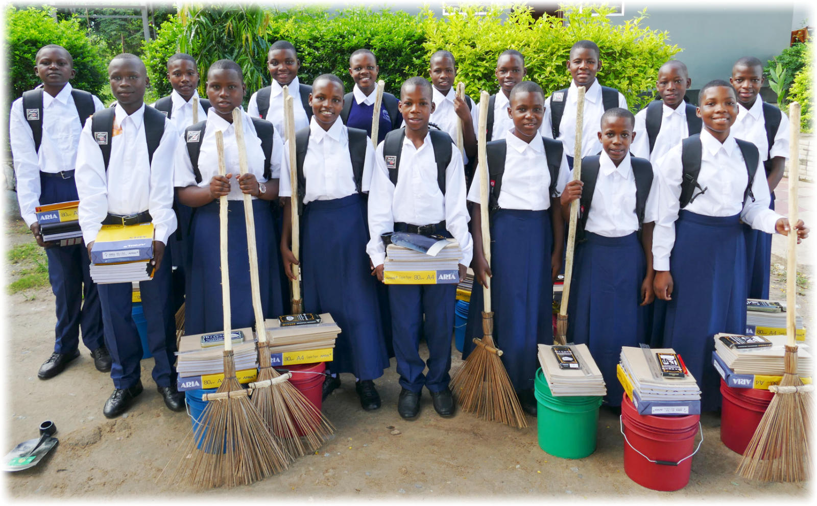 Picture of form 1 (2024) ready for their first day at secondary school with all their requirements: